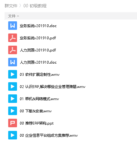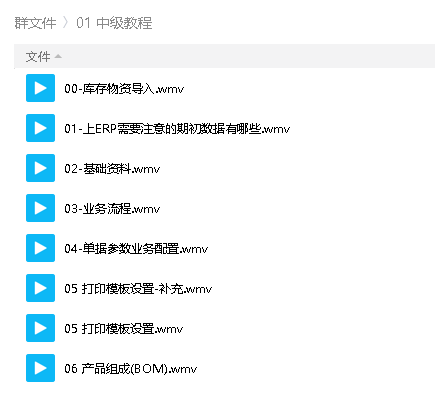 2. 中级: 导入, 上ERP注意事项, 基础资料, 业务流程, 单据参数业务规则, 打印模板, 产品组成