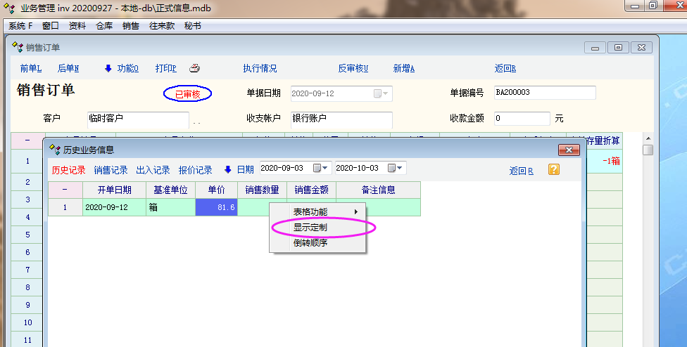 在销售订单或现货销售单里面--查看历史记录---右击显示定制,一般admin登陆设置了其它用户绑定的显示定制,其它用户再登陆应该进不了显示定制界面吧。但这里还能进去,那用admin绑定了还起什么作用?