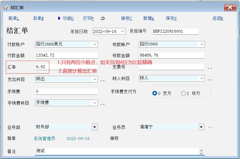 2. 汇率直接自动计算出来,汇率=收款金额/付款金额;