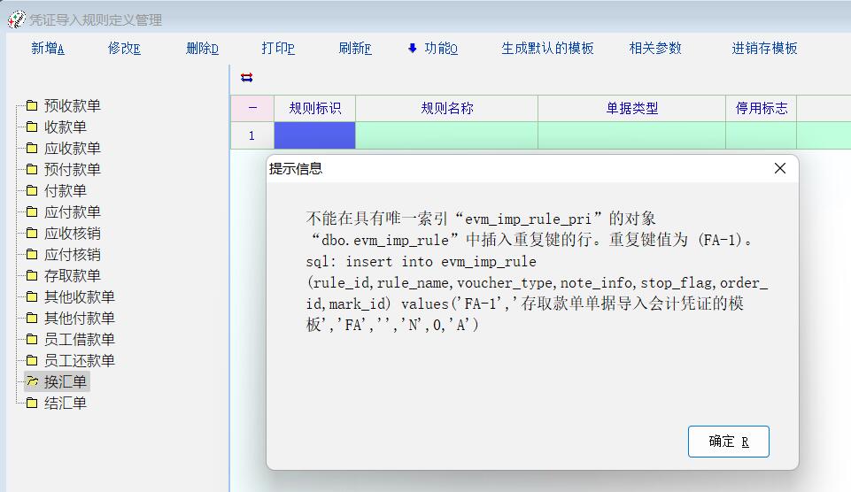 3. 财务会计引用模板定义--生成默认模板报错(如图);
