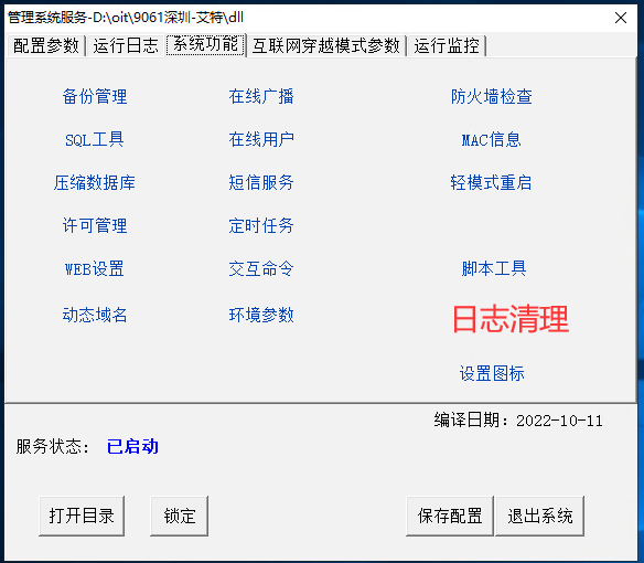 应用场景: 当信息管理员维护服务器时, 发现硬盘空间不够了, 查看数据库过大. 或一些日志文件过多 日志清理, 可清理以下几种数据 1. log下的文件, 设置清理多少天之前的文件 2. 打卡临时文件 / 原始打卡记录清理某日期之前的记录 3. 日账记录, 例如可以清理2年之前的所有日账记录 (一般不再查询, 或移至 归档表中, 类似于进销存中的单据归档) 4. mssql / mysql 数据库的日志文件大小 有利于节省信息管理员快速清理这些日志数据. 提升工作效率, 另 外有些人员也不知道如何清理, 或在何处清理. |