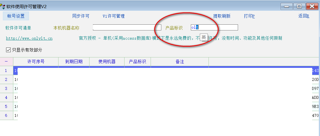 V2许可的产品标示改不了的,只能输入电脑名称来授权