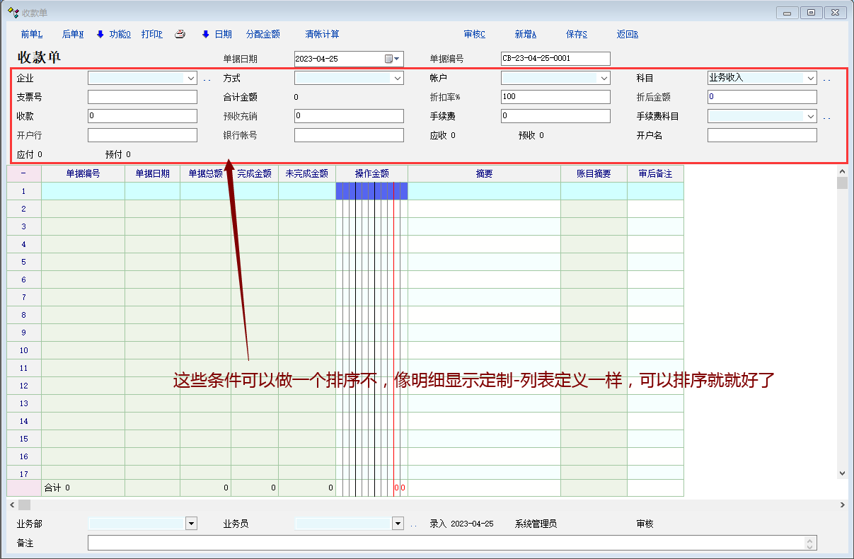 如图在单据的功能里面添加一项表头排序的功能,用脚本去排影响系统速度。
