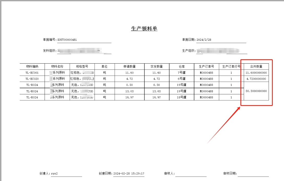 在打印模版脚本定义可以增加一列,根据单据流水和产品编号提取合计数后赋值到新增的列即可