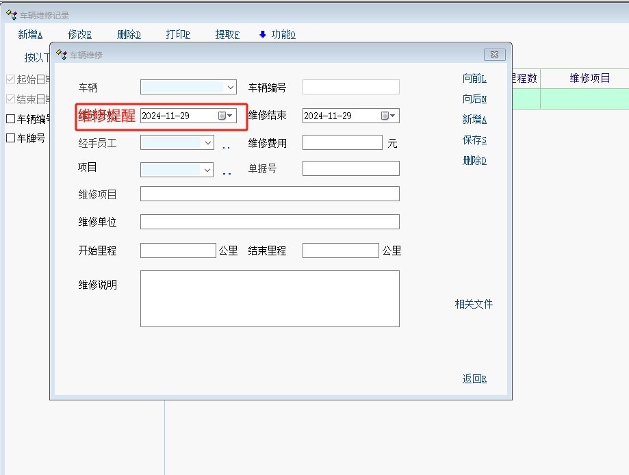 不知道各位的车辆保养是记录在哪里面的,我是记录在车辆维修里面,建议把里面开始里日期改为维修提醒日期(或者添加个下次保养日期),车子到了下次要保养的时间有提醒功能,