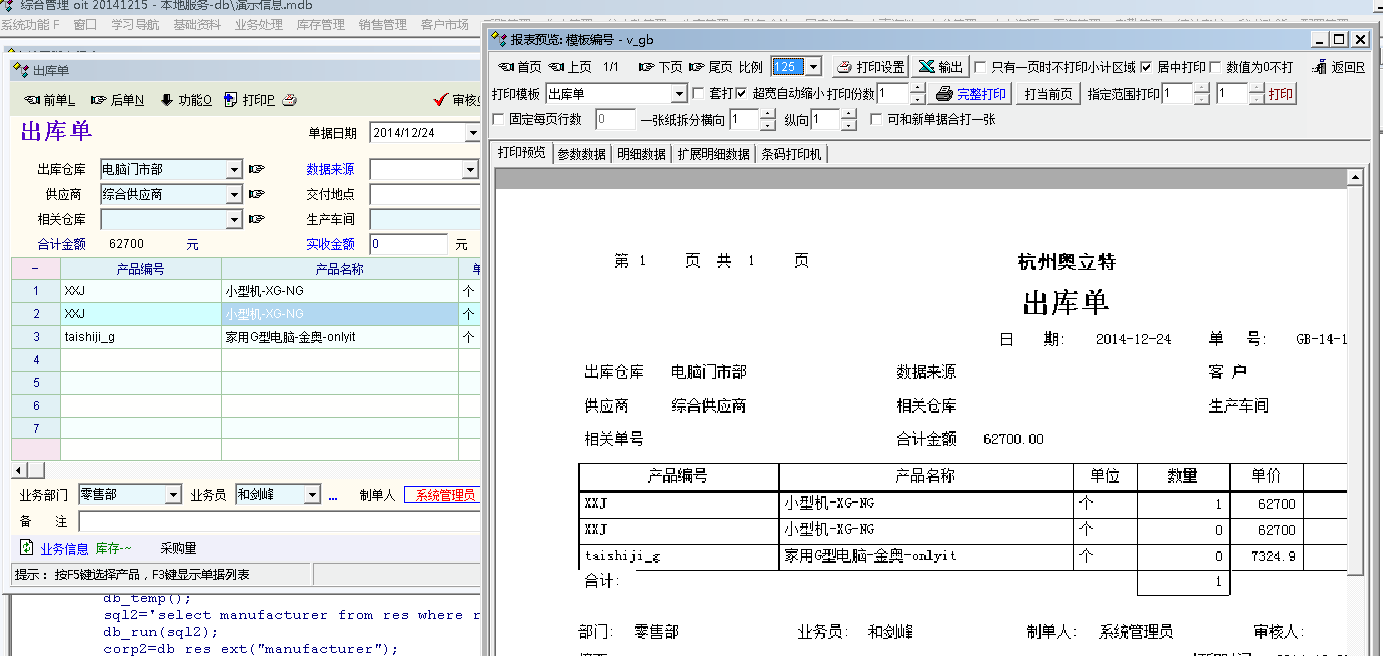 某个体批发商代理了两个或者多个厂家的产品,当开发商超业务时由厂家提供增值税发票,该批发商配送货物而配送单据开出的表头必须是某类产品的生产厂家。当开立单据的时候,某类产品是A厂家的,另外的是B厂家的,对方需要开A厂家或者B厂家的表头单据时就必须是A或者B的单据,如果是两类产品混开单据表头则是代理商的名称。也就是根据不同的产品在打印的时候自动修改单据表头的公司名称。