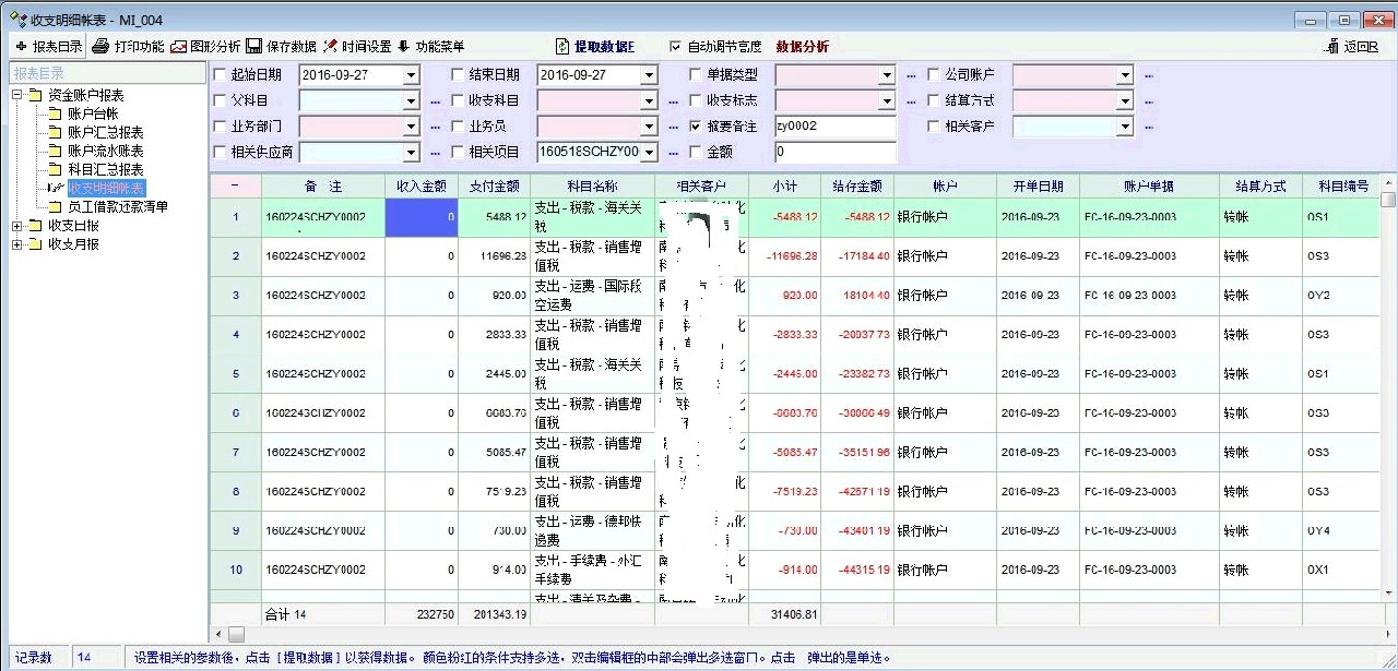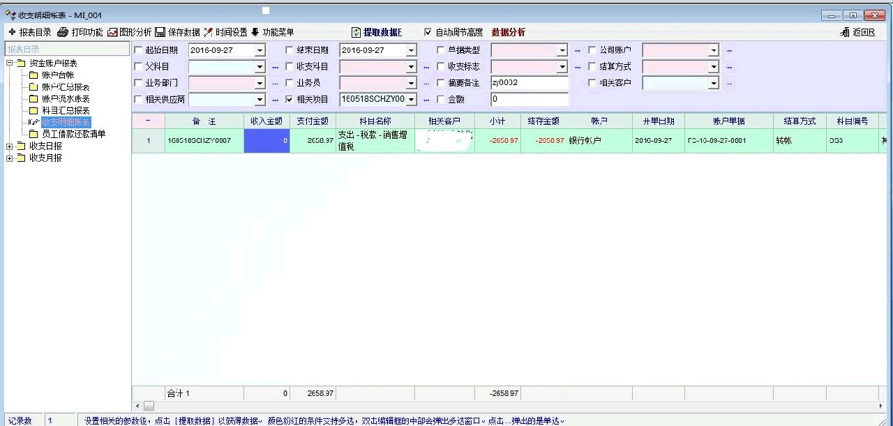 我去收支管理那里打开收支详细报表,按照项目查找,也只能找到这个项目的收支项目的数据,采购款和收货款并不能显示,可以不可以在这里改善一下,在检索项目编号的时候,可以使采购款和收货款都能显示在里面(这里有个问题就是在付款单和收款单的单据里面并不能选择项目号)希望能做一个这样的功能。