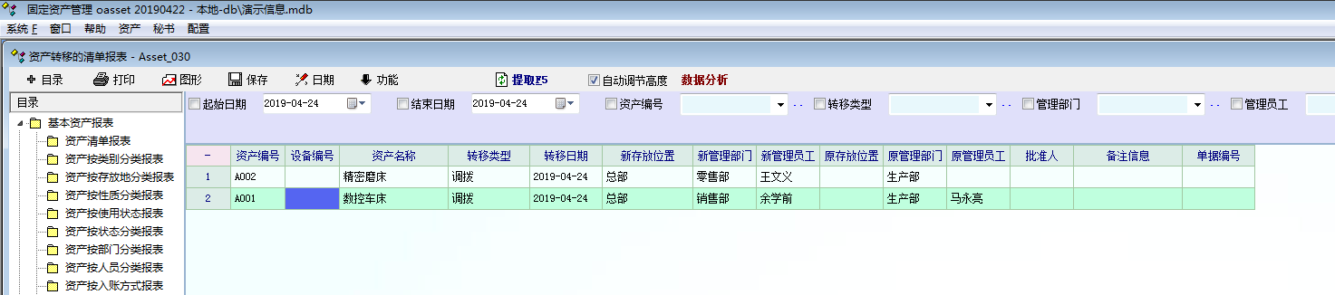 转移 报表 能不能增加一个设备编号