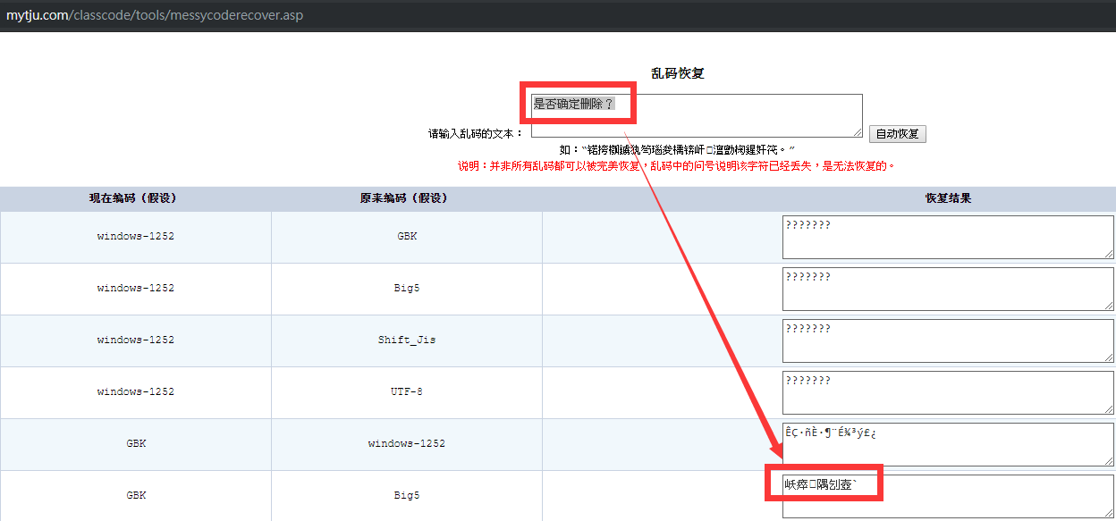 找到 GBK ---》  Big5  ,复制恢复结果的字符到程序脚本中即可解决。