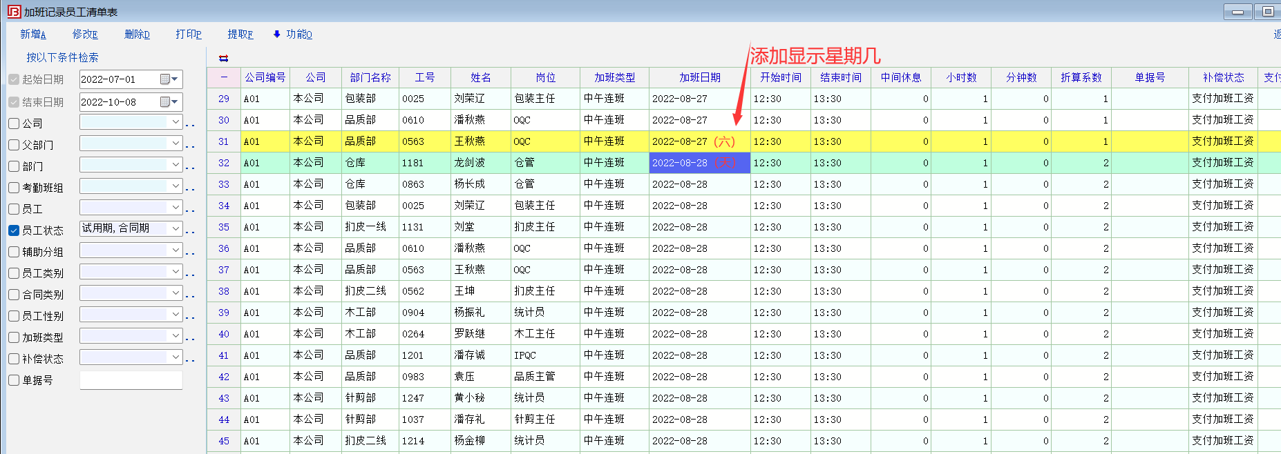 求助_希望加班记录列表日期能显示星期几?_人力资产