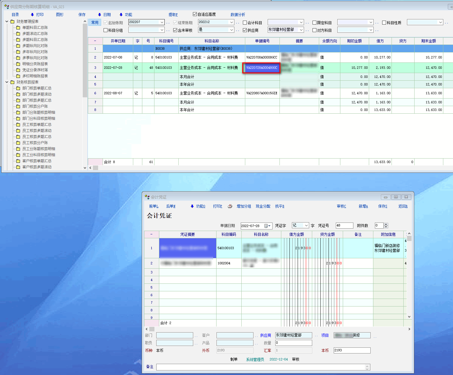 凭证报表-供应商分账期核算明细,提取供应商对应账期的凭证后,双击某条记录提示“系统里不存在该单据编号 VA220728A00051GGC”
