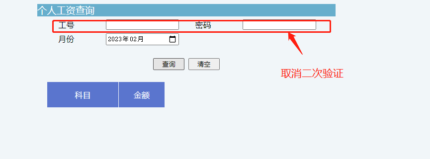 员工身份登录其实只要显示  工资查询 、   打卡查询 、    假期使用和剩余查询 ,还有WEB界面是否可以做到不要二次登录,直接调用首次的登录信息就好,不要首页进去后点击工资查询后还要再次填写登录信息。