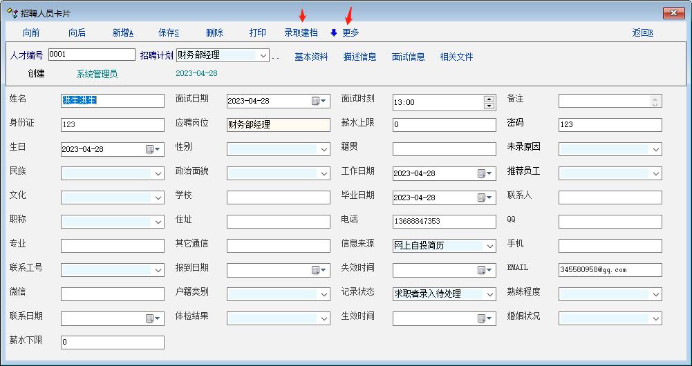 应聘人员资料,可以转录取建档,可以转人才库, 很方便,