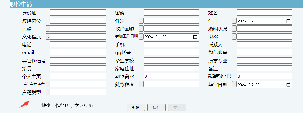 应聘人员---系统里面填写缺少---工作经历,学习经历;