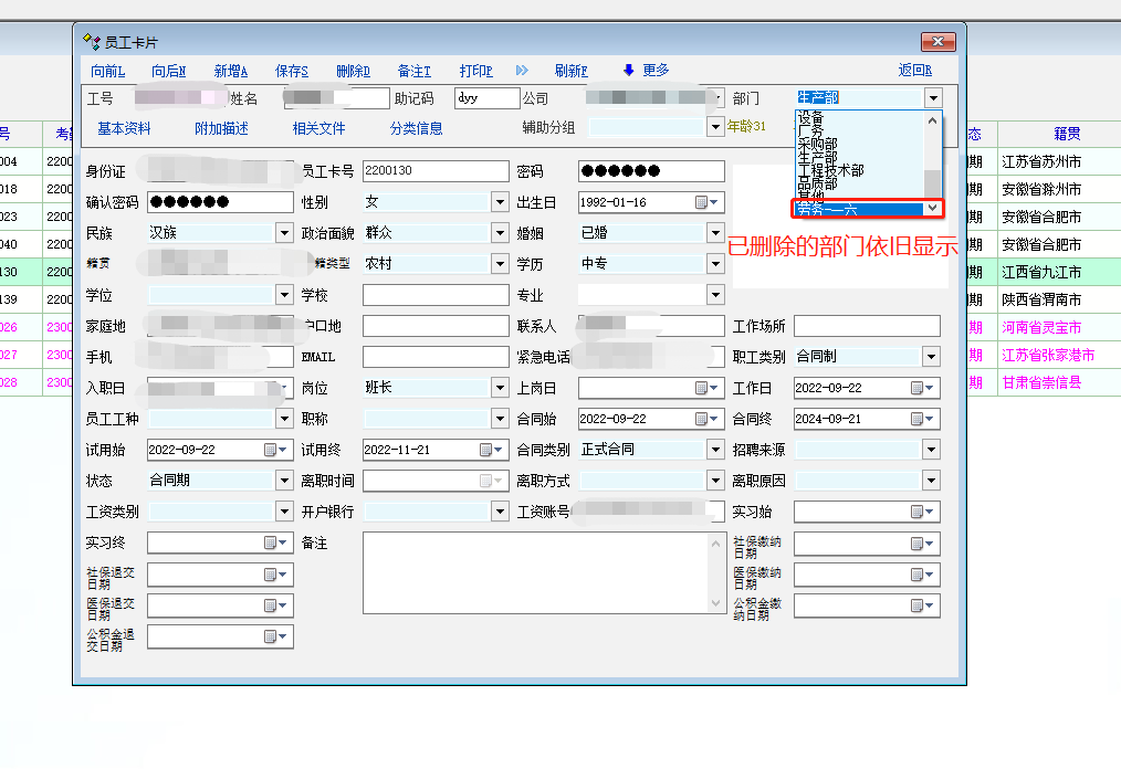 今天发现已删除的部门,在员工卡片编辑页面依旧会显示
