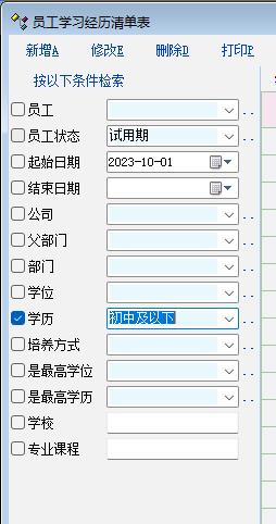 在人事资料项目中的员工资料这一项目打开后,左侧的“按以下条件检索“下的项目打开后可以多选,其他的工作经历、学习经历、社会关系、职称管理等项目打开后,左侧的“按以下条件检索“下的项目打开后可以不能多选,希望能增加多选。其他大项像考核、考勤里面的检索功能也有部分存在不能多选的情况,希望都能加上