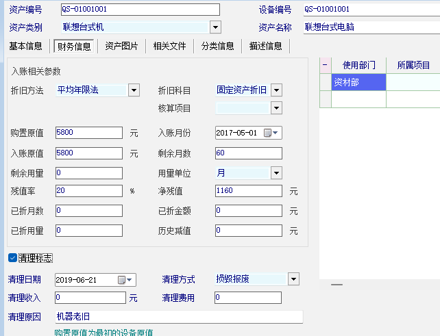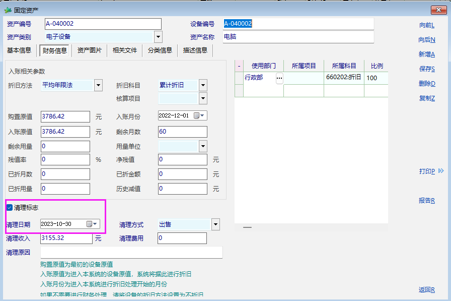 我直接在变更管理里做了一个清理的记录,但是清理后次月折旧报表显示仍然会计提折旧,不过资产卡片的折旧信息里没有。