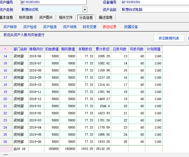 另外,参数调整后,再查询折旧报表,最后一个月的金额不正确。