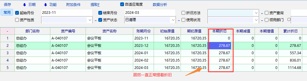 最近发现已经清理过的固定资产,在清理之后计提折旧时仍然会正常计提折旧,导致账务处理需要调整,建议修正。