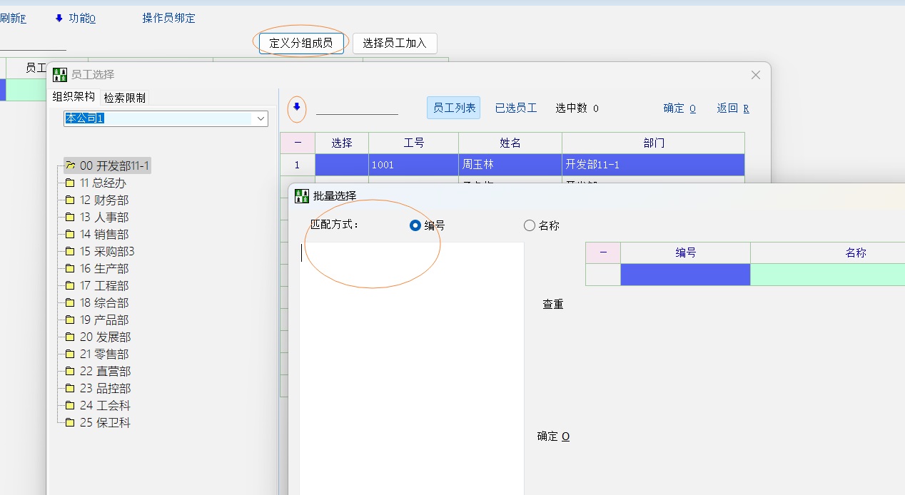 选择员工那里可以批量导入的