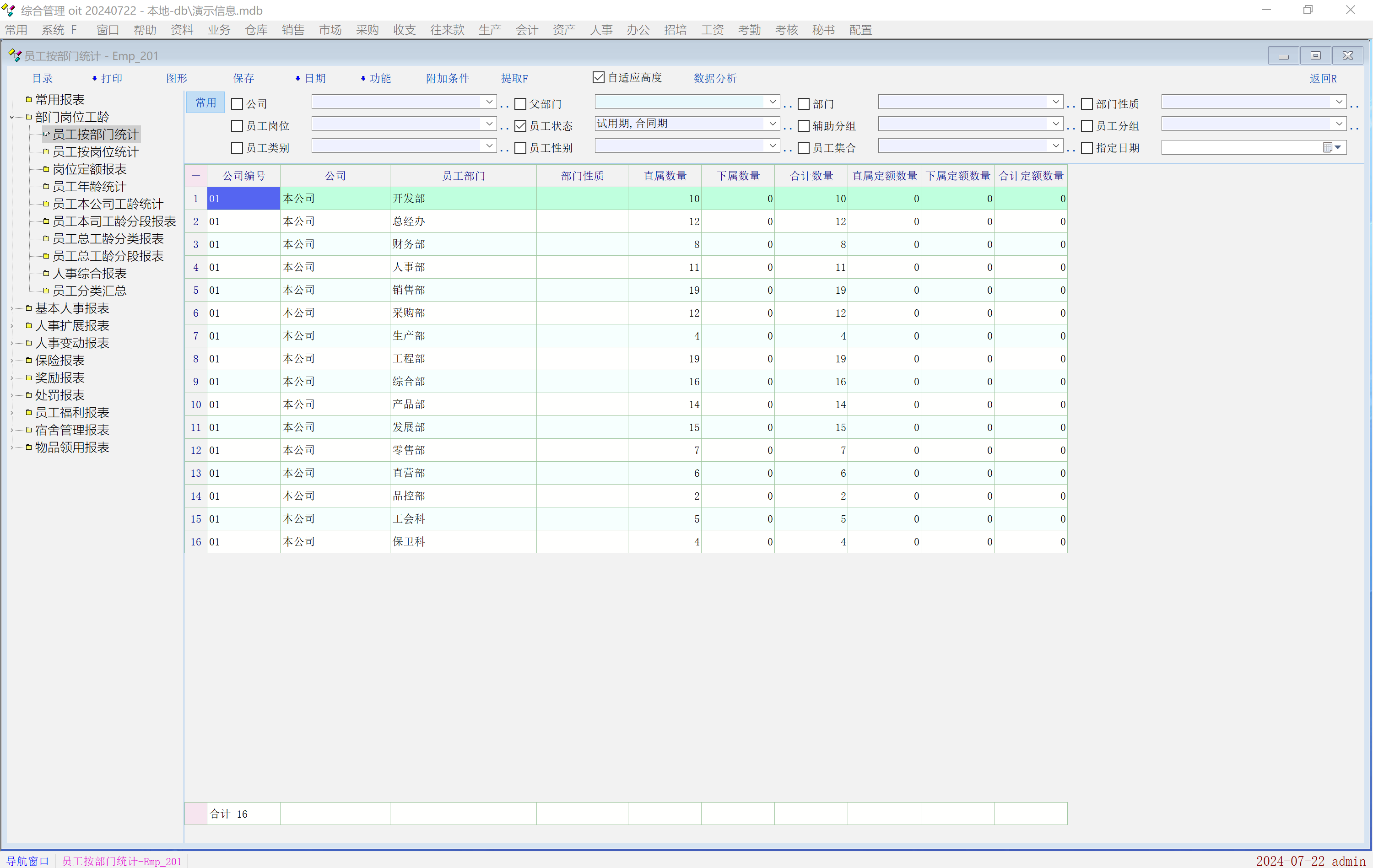 最下方只有部门的合计数 没有员工的合计数, 希望能够增加 谢谢!