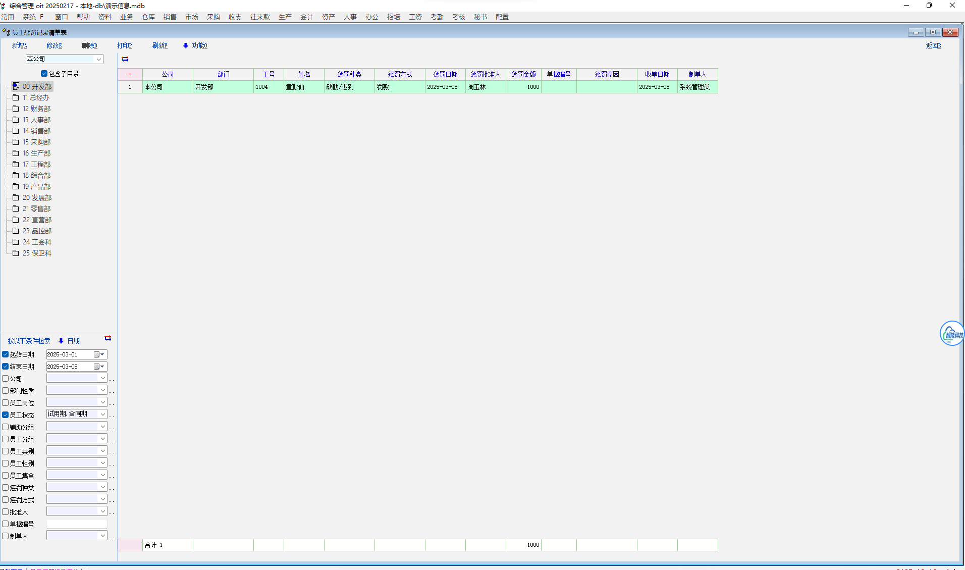 在先点击办公-奖励/惩罚没有异常