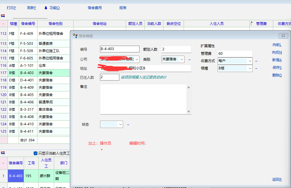 原创_宿舍管理----宿舍编辑里面添加---操作员、编辑时间、编辑记录_人力资产