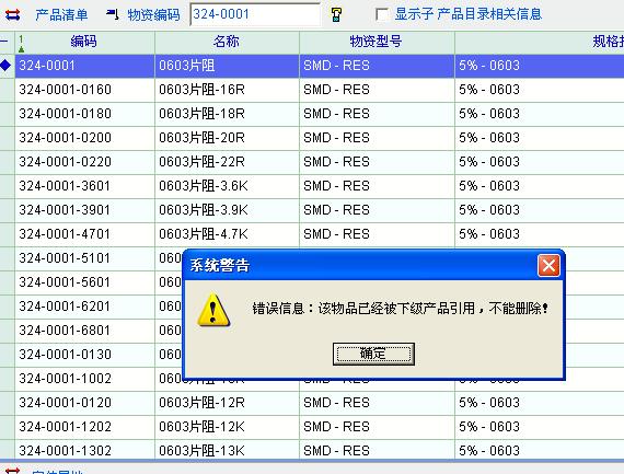 版主你好,我设定了一个物料的资料和计价折算方式后再向下批量定义子物料时发现子物料没有跟随出现计价折算方式的定义。还有你们改进了的删除界面上的所以记录功能在以上情形不能批量删除。如:我先定义了封装为0603的贴片电阻后才能向下批量定义该封装的所有阻值资料,但每个阻值电阻的封装和计价方式是一样的,计价折算方式也是一样的却无法跟随相应的定义改变。我要删除此项的所有记录时只能一个一个的删除,因为所有阻值电阻的上级物料是0603片阻,而不能批量删除。建议能否不用设定一个上级物料就可以批量定义所有的阻值的电阻资料。如图: