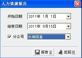 这表明,综合报告中的统计方式是按系统默认的--按部门分类--进行报表的统计方式进行的,也就是说,在统计指定日期2011-1-31内的人员数据时,已把员工资料中状态为离职的人员信息全部剔除了,更简单点儿说就是系统只统计2011-1-1到2011-1-31期间,员工状态为在职的员工数量。这个判断可以从以下测试中得到验证,如图: