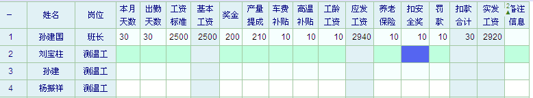 应发工资 = 基本工资 + 奖金 + 产量提成 + 车费补贴 + 高温补贴 + 工龄工资;