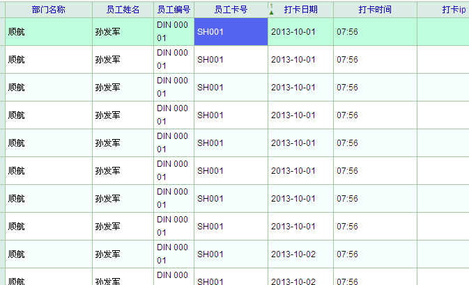 数据处理后的,也只显示上班打卡时间