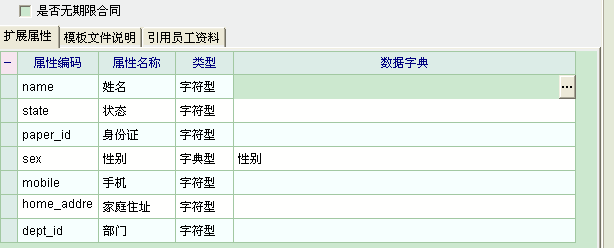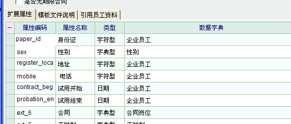 返回到扩展属性里,添加右键新建个字段,编码填mobile,属性名称随便填自己知道意思就好,如手机,类型字符型,有些字典型如部门,岗位之类的类型就用字典型,字典选好。
