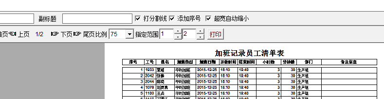 加班单打印界面