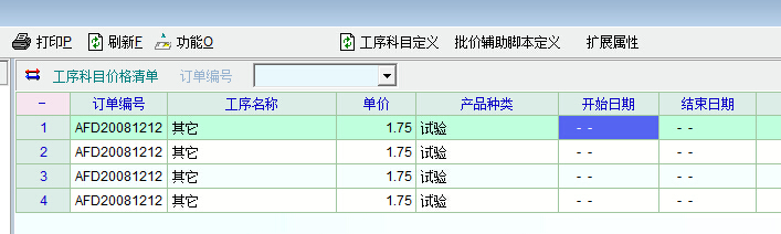 另外,发现在工序科目价格中竟然可以存在多条(订单编号、操作工序、产品各类)完全相同的工序科目价格记录。这个应该也是系统的一个BUG