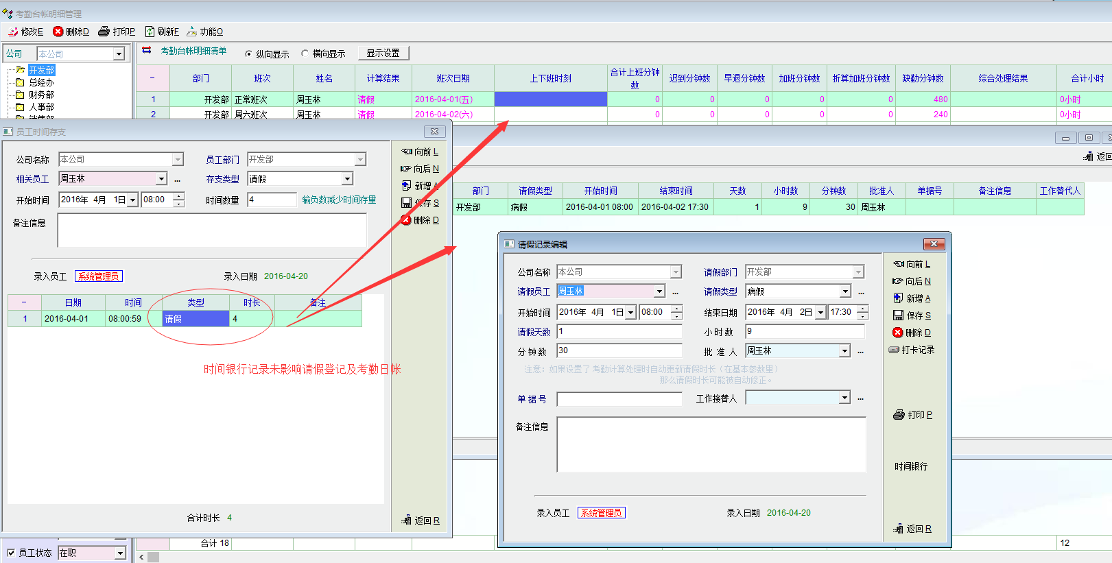 存支是单独的。不影响 考勤日账和与请假时间有关联。