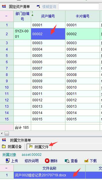 老师好,我们的固定资产卡片,对应了维修记录,更新情况等,想以 附属文件的形式上传,但后续只有点击该资产卡片,才能看到附属文件。