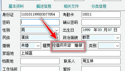人事部分,身份證自動識別籍貫亂碼