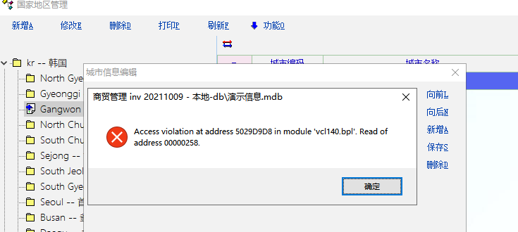 国家地区管理输入信息的时候,出现BUG,信息还是可以存储,但是每次都报警。