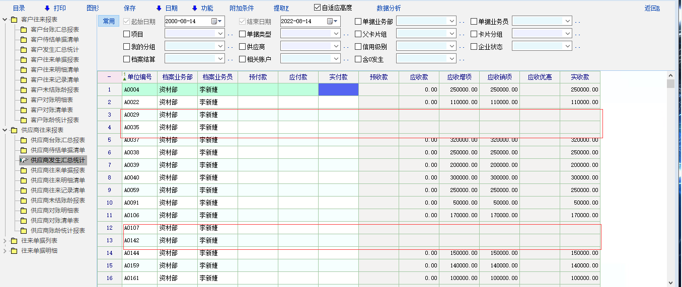 今天查往来款报表的时候发现一些不明数据,客户及供应商都查不到相应的数据,由于客户及供应商的编号一样,导致有一些数据客户台账汇总报表/客户发生汇总统计及供应商台账汇总报表/供应商发生汇总统计都出现了,有一些则分别出现在客户台账汇总报表/客户发生汇总统计/供应商台账汇总报表/供应商发生汇总统计,1:请问大佬们是哪里操作出了问题,2:请问大佬们应该怎么处理