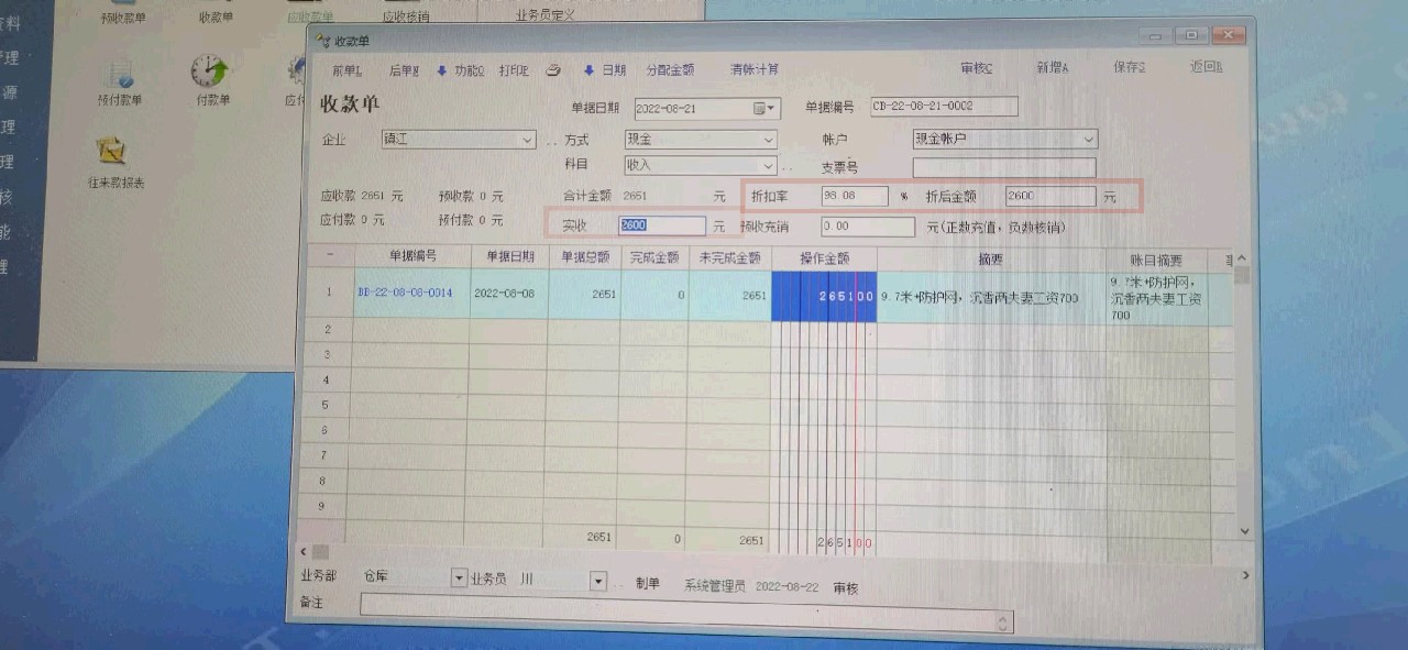 问题2;除了上面客户砍价外,有时也会给部分客户收款时折让,销售折让在软件里要怎么处理?