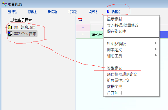 选择“项目”定义,然后在项目管理中增加相应的分类和具体项目,比如项目类型可以有:往来项目、在建项目、成本项目……