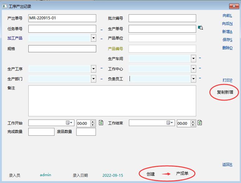 工序产出单没有“复制新增”菜单,这样同一工序做同样的产品,录入时每个人都需要将单据中的内容重新填写一次,效率比较低,如果在单据界面增加“复制新增”按钮,就像其他物资单据那样,就可以在单据界面直接复制新增,仅需要修改一下数量即可。另外,如果能像物资单据那样,设置下级单据(比如产成单),在单据完成时直接创建生成下级单据,会方便很多,尤其是仅针对班组核算或工序核算的情况非常方便。