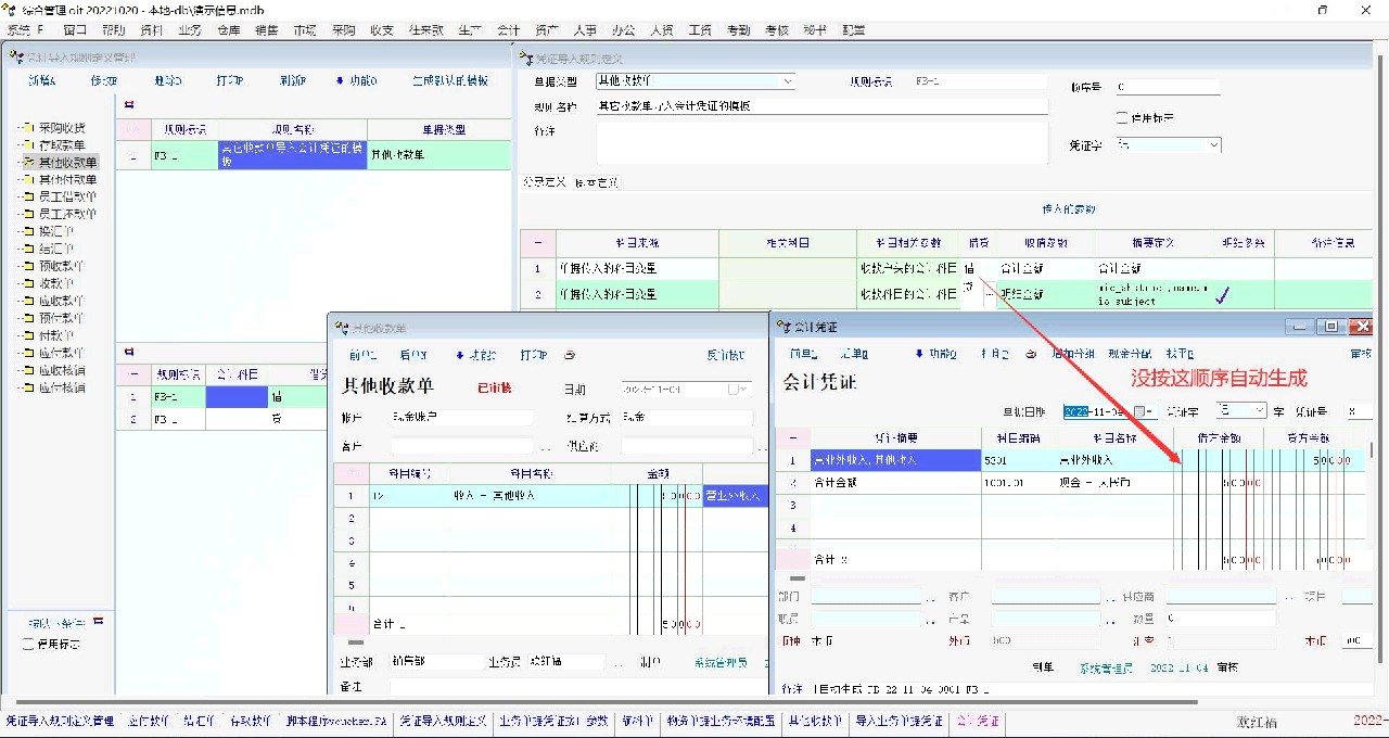 有的个人习惯先借后贷,如其他收款单,在导入规则定义了顺序,但生成出来的凭证还是先贷后借,能否按定义顺序来生成?