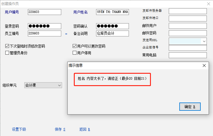 求助_操作员字符20不够,越南文姓名有的会超过20个,需要增加操作员字符数_产供销