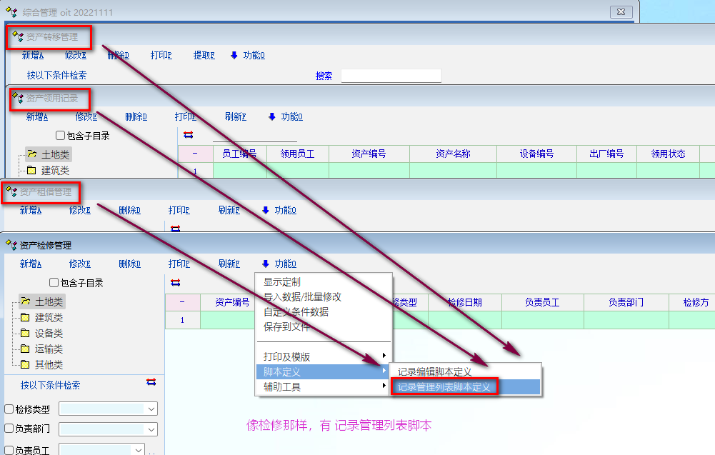 上面三个,可否像第四个那样,支持管理列表脚本,谢谢。
