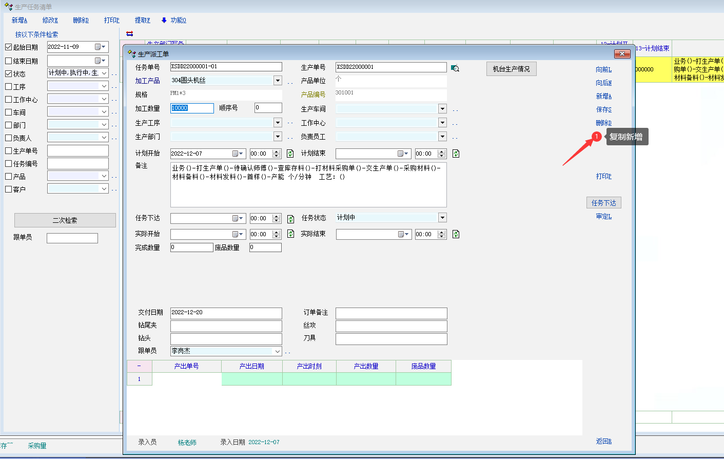 生产工序中, 增加复制新增功能