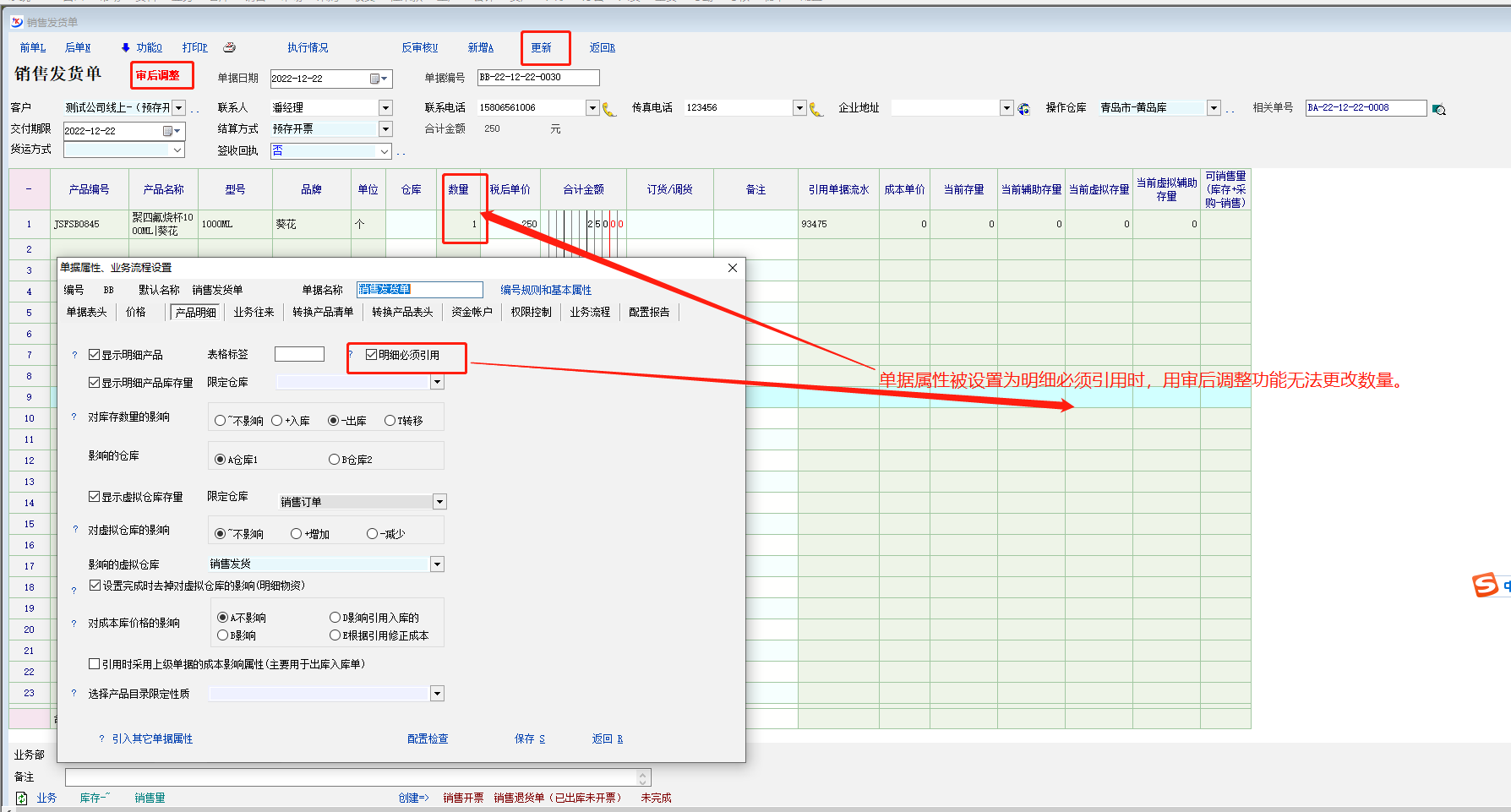 求助_紧急求助:销售发货单被设置为必须引用明细时,用审后调整无法修改数量的问题。_产供销