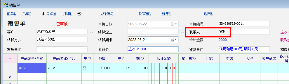 如图片所示,希望改进两个细节。1、待结列表中的联系人能与物资单据中的联系人一致而不是只显示客户资料中的主联系人。2、希望待结列表中可以像对账明细列表一样显示待结单据物资内容。