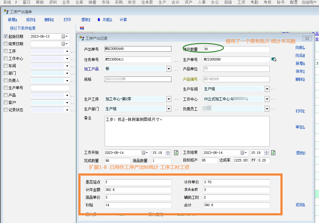 补充:系统已有扩展1-8 用作工序产出时同时采集工序工资