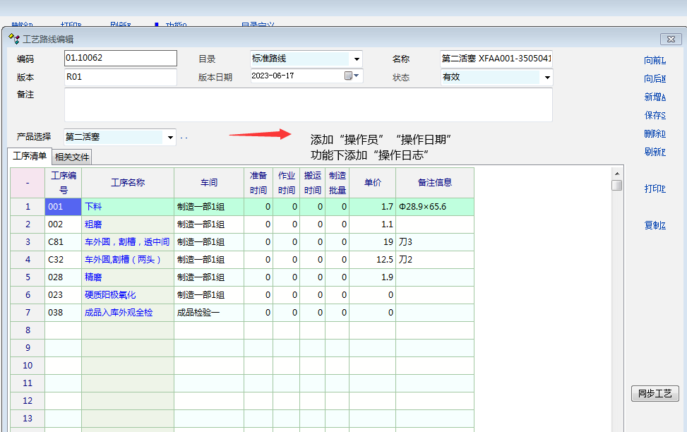 原创_工艺路线与BOM里面----添加操作员--操作日期--修改日志_产供销